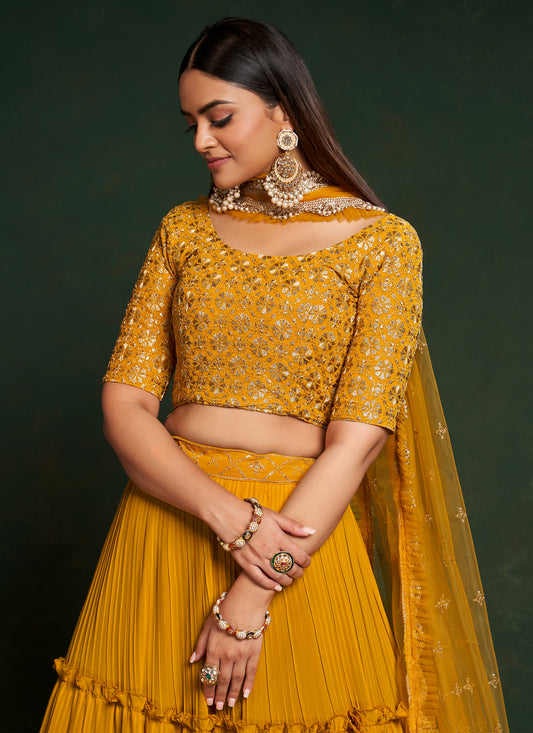 Mustard Yellow Gorgette Lehenga Choli