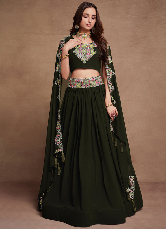 Dark Green Gorgette Lehenga Choli